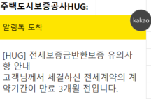 고객님께서 체결하신 전세계약의 계약기간이 만료 3개월 전입니다.
