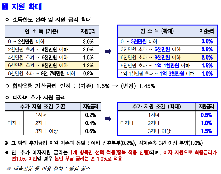 소득제한 확대 : 부부합산 연소득 1억3천만원 이하