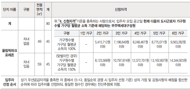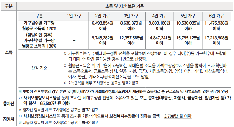 예비신혼부부 2인가구 합산 세전소득 월 9,748,282원 이하 (일반 1순위)