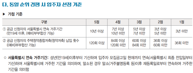 가산점1 : 예비부부합산 서울특별시 연속 거주기간